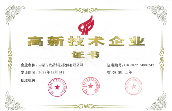 內蒙古歐晶科技股份有限公司作為自治區2022年度首家深交所主板上市(股票簡稱:歐晶科技 股票代碼:001269)的國家級高新技術企業,成立于2011年4月,位于內蒙古呼和浩特市賽罕區,公司立足于單晶硅材料產業鏈,主要為太陽能級單晶硅棒硅片的生產和輔助材料資源回收循環(huán)利用,提供配套產品及服務,具體包括石英坩堝產品、硅材料清洗服務、切削液處理服務。下設五家全資子公司,分別分布于天津市、無錫市、寧夏等地。服務理念:始于客戶需求,終于客戶滿意經營...